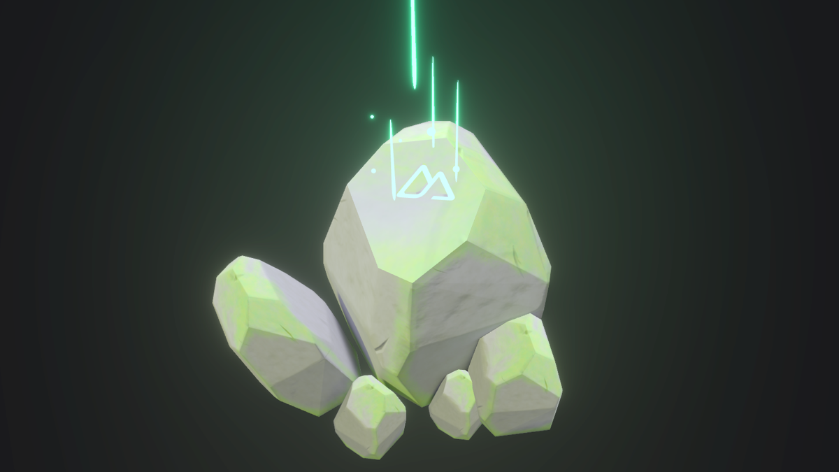 Nuxt Stone is a simple scene with a stone model and a Nuxt logo. The scene is rendered with baked lighting and post-processing effects.