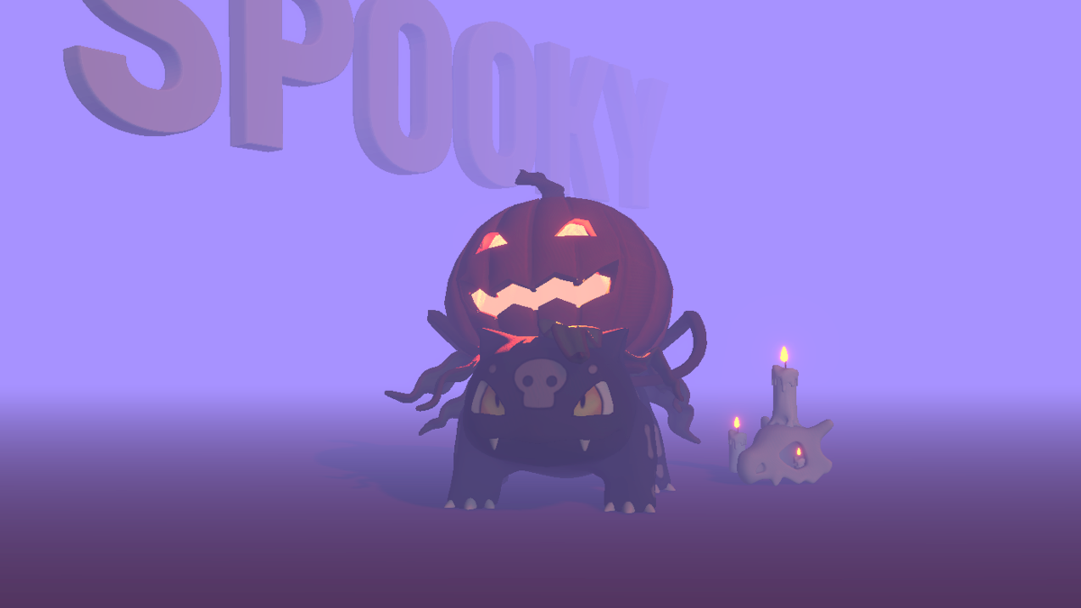 A animated 3d pumpkin that uses shaders, particles, and custom gltf model